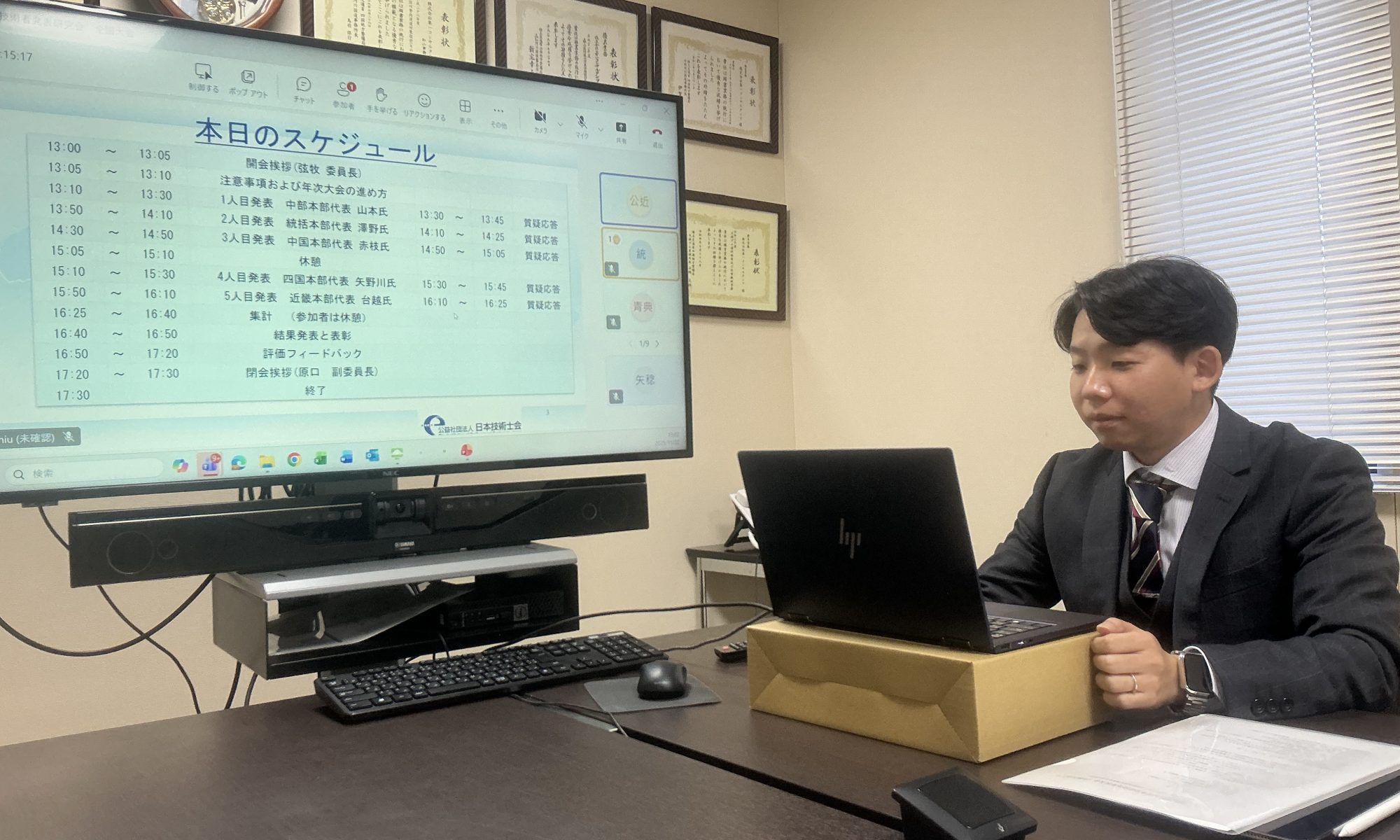 総会では、現在、弊社と日本大学工学部、東京大学、大豊町との共同で実施している【小規模自治体におけるインフラマネジメントの改革における取組】について