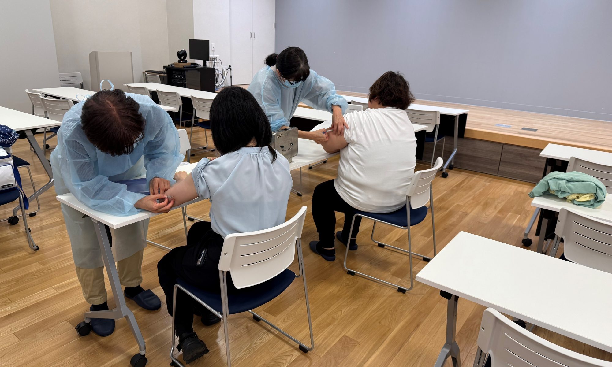 当社産業医の青山整形外科 濵口先生に来社いただき、本社研修室で社員・派遣社員すべての希望者に対して全額会社で費用負担してインフルエンザの予防接種を実施しました。