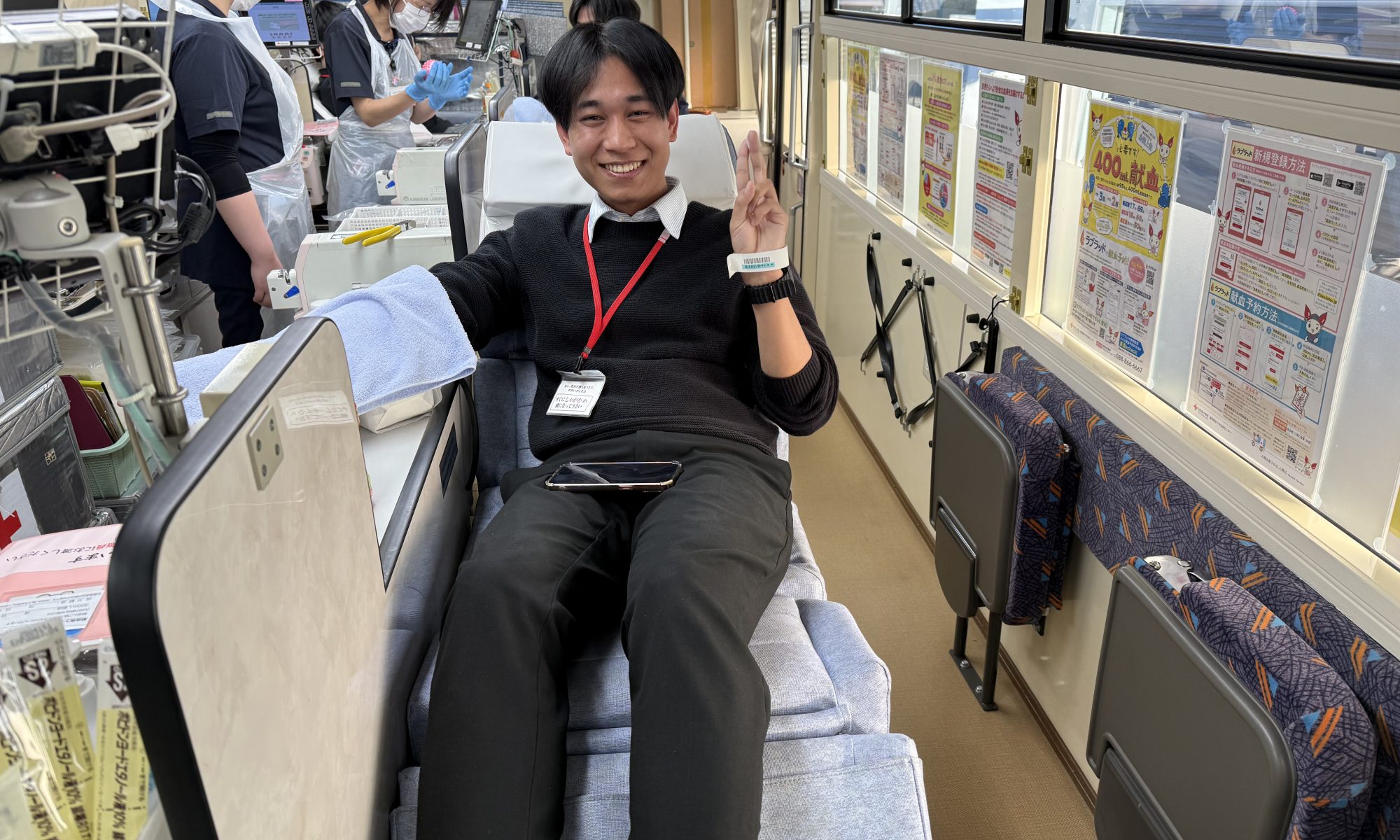 献血参加者は研修室にて問診を受けた後、当社駐車場に停めてある献血バスに乗り込み献血を実施致しました。社員同士の呼びかけもあり、25名の方が参加する事ができました。