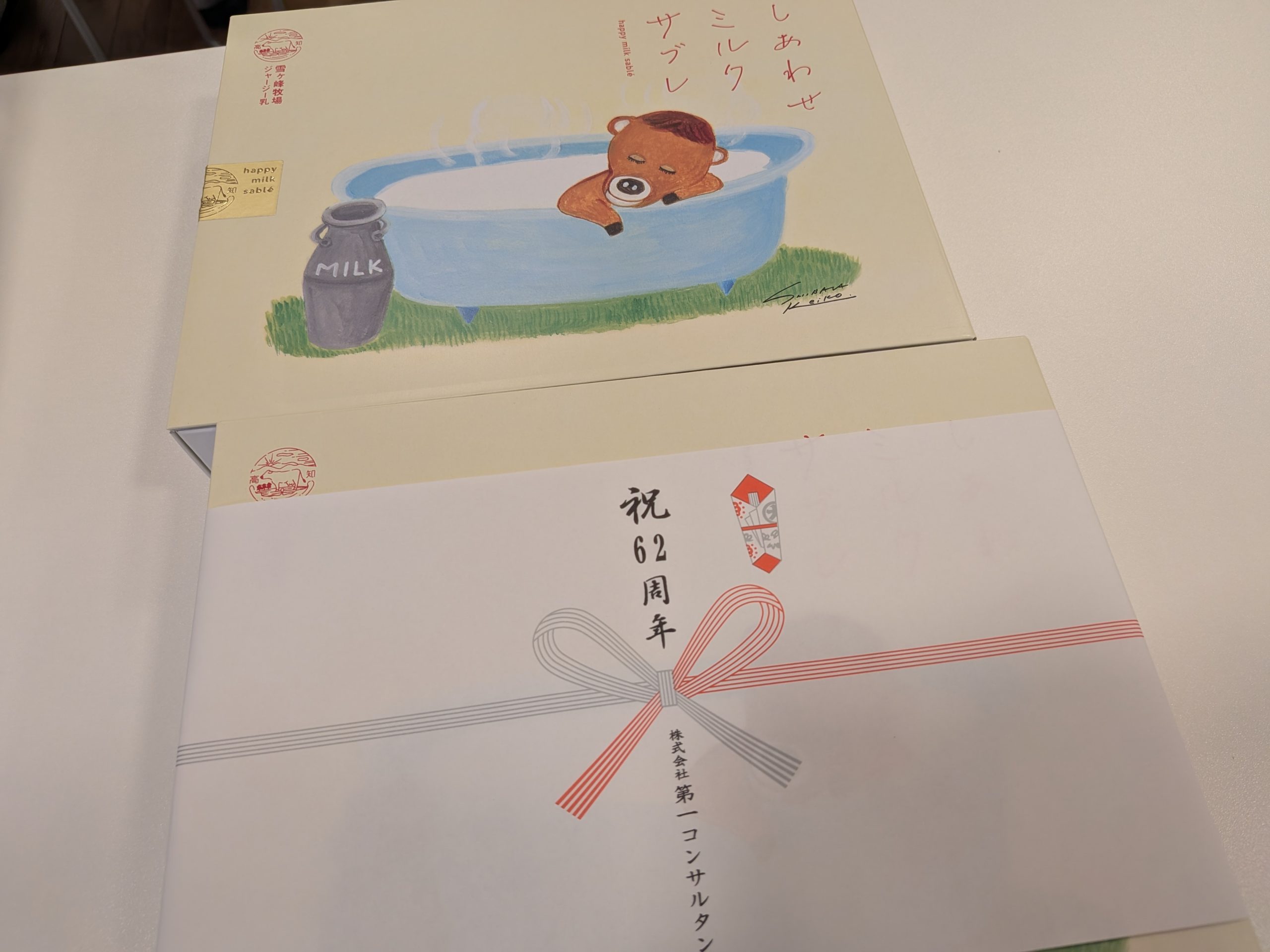 これもひとえに、日頃から温かいご支援を賜っている皆様、そして共に歩んできた社員一人ひとりのおかげです。心より御礼申し上げます。本日は、日頃の感謝を込めて社員へ高知大丸様の「しあわせミルクサブレ」が配られました。