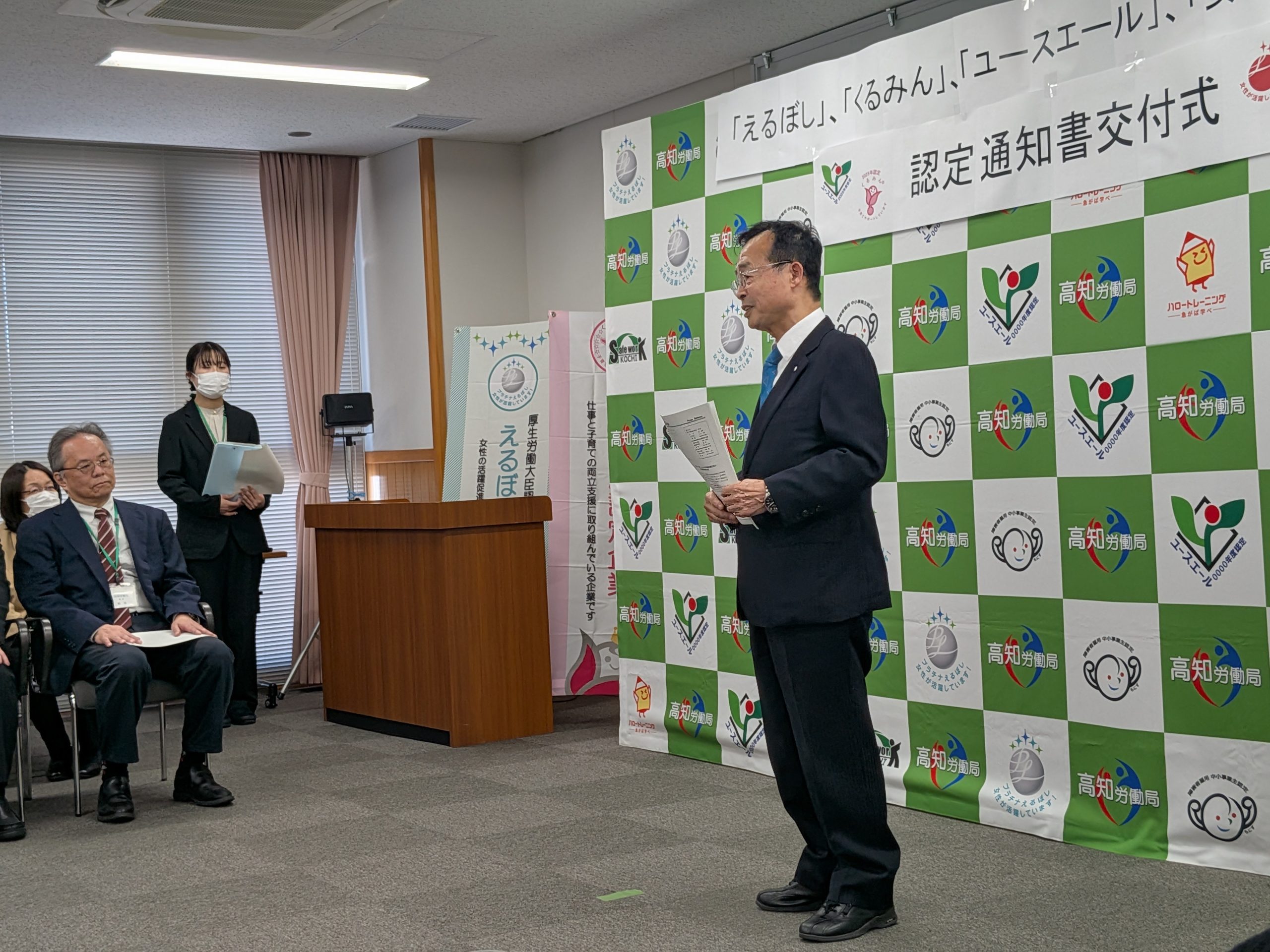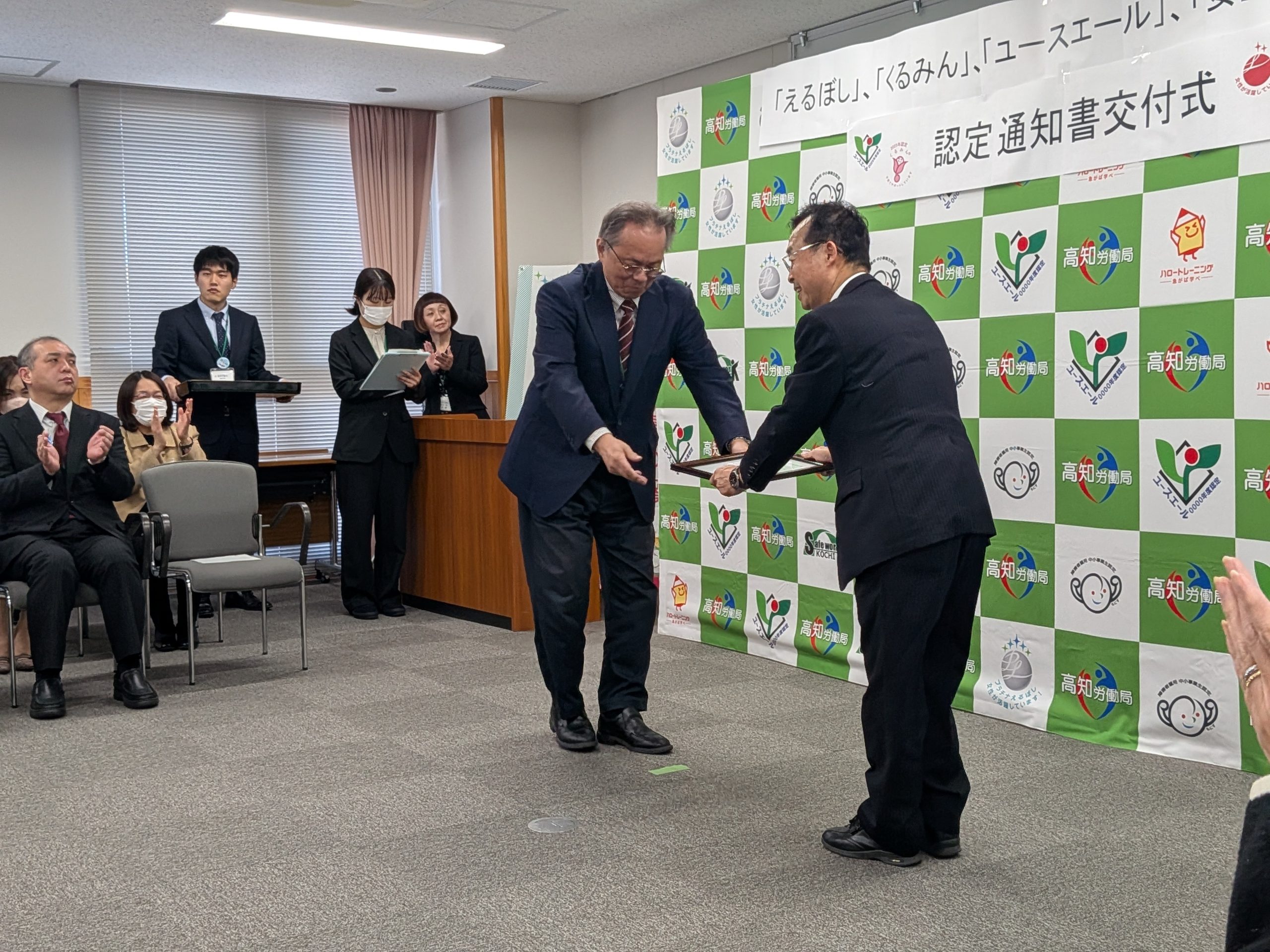 本日、高知労働局において、くるみん認定通知書交付式が行われました。
