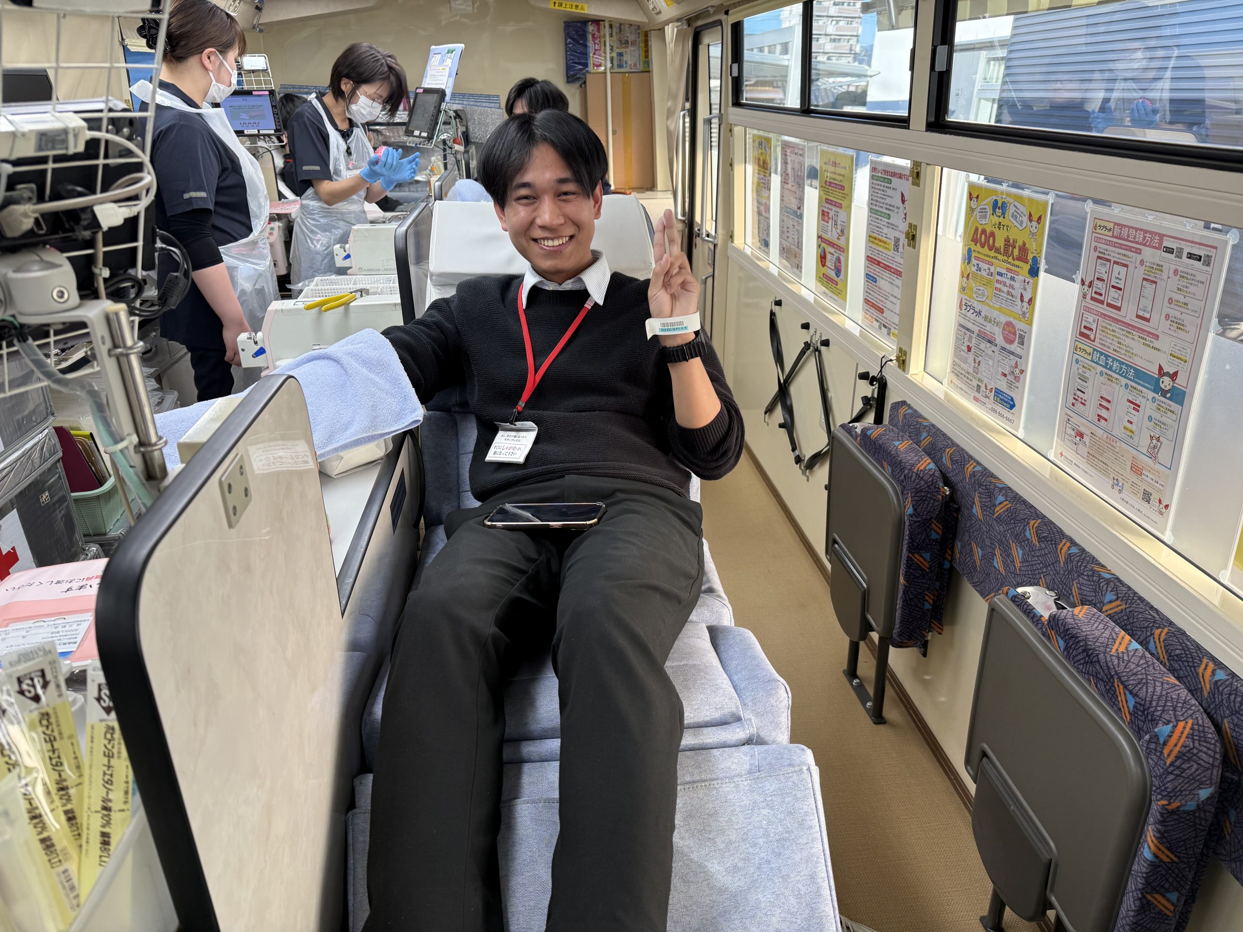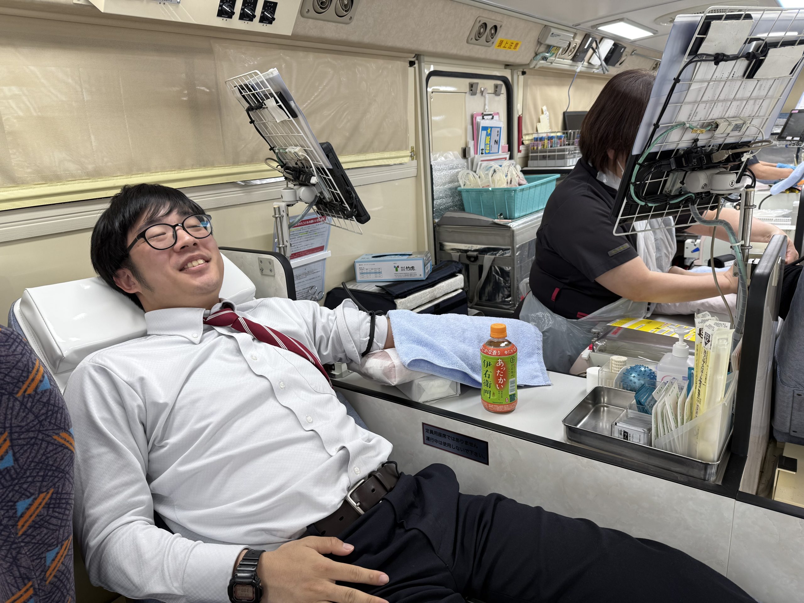 献血参加者は研修室にて問診を受けた後、当社駐車場に停めてある献血バスに乗り込み献血を実施致しました。社員同士の呼びかけもあり、25名の方が参加する事ができました。