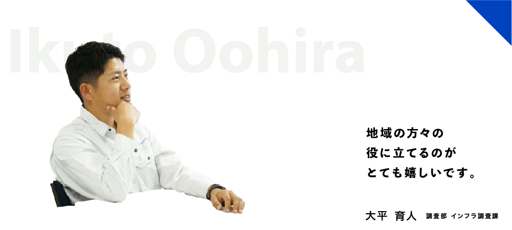 測量・調査に携わっています。もちろん学校で習ったことがなく入社してからは勉強の毎日ですが、とても充実感があります。とにかく仕事の流れと、小さなことでも気づいていくこと。良ければ伸ばすし悪ければ直す。当たり前のような話ですが、それがとても重要であると実感しています。